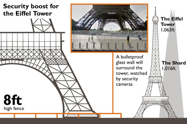 Allerede før de siste angrepene i Paris var det planer om å bygge et over to meter høyt glassgjerde rundt Eiffel-tårnet. Du vil se gjennom det, men hvordan vil folk reagere på en slik påminnelse om at byen er «utsatt»? Paris har allerede lidd store økonomiske tap pga terroren. Hva kommuniserer sperringene?