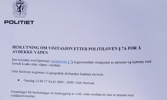 – Jeg syntes det var rart, og spurte hvilken hjemmel de hadde til å stoppe tilfeldige folk og visitere dem. Etter en liten stund viste de meg ordren, og jeg tok bilde av den.