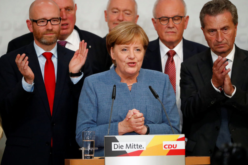 Tysklands statsminister Angela Merkel sier hun nå vil utforske alle muligheter for en ny regjeringskoalisjon.