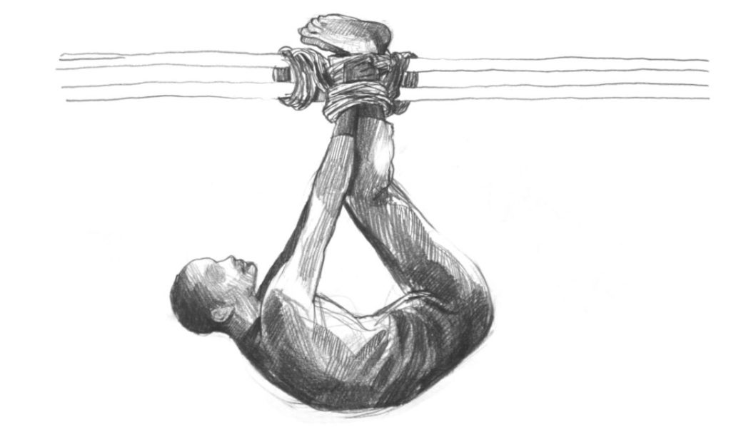 NRKs tegner illustrerer en av torturmetodene fra koranskolen etter beskrivelse fra «Omar».