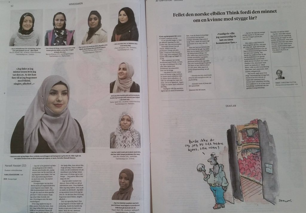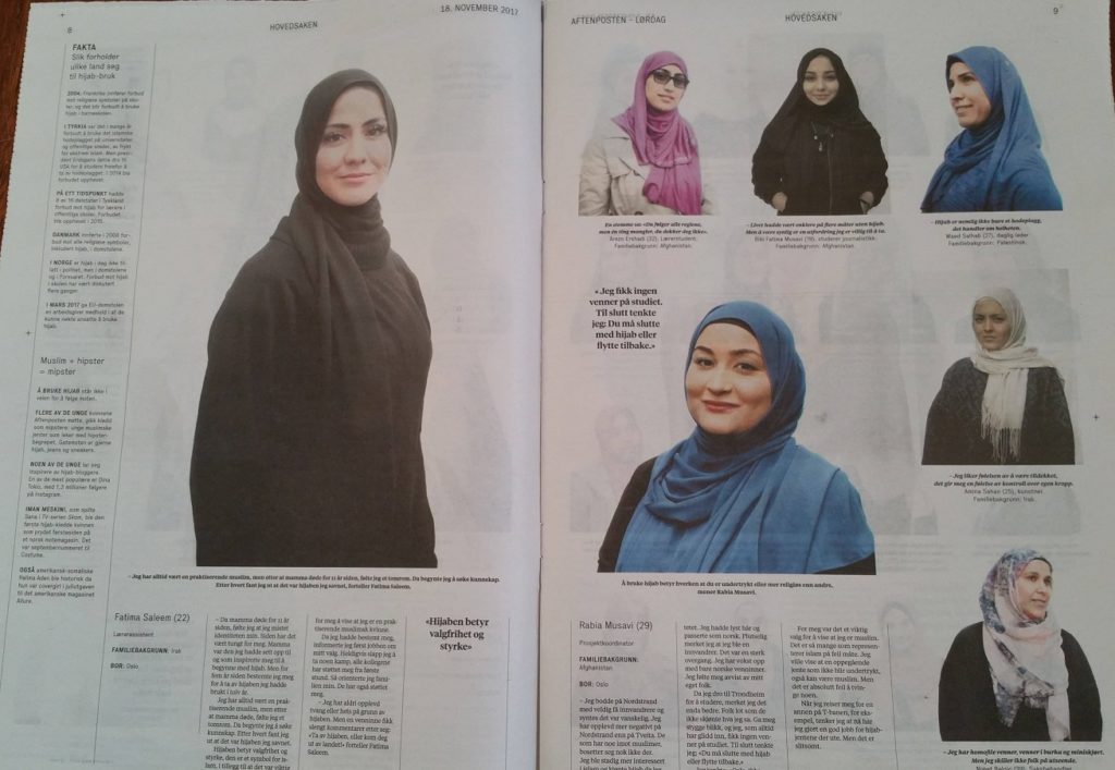 I lørdagens utgave av A-magasinet trår Aftenposten til med hele 9 sider av hijab-kledte «norske kvinner». Det er nemlig typisk norsk å gå med hijab. Ser det ut til. Nesten like typisk norsk som å gå på ski. Snart er norske kvinner født med ski på bena og hijab på hodet. Bare vi får justert oss litt, slik som Aftenposten tydeligvis ønsker.