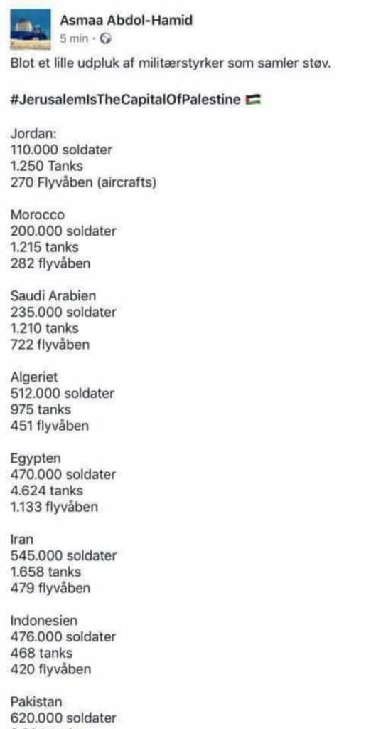 «Blot et lille udpluk af militærstyrker som samler støv. #JerusalemIsTheCapitalOfPalestine»