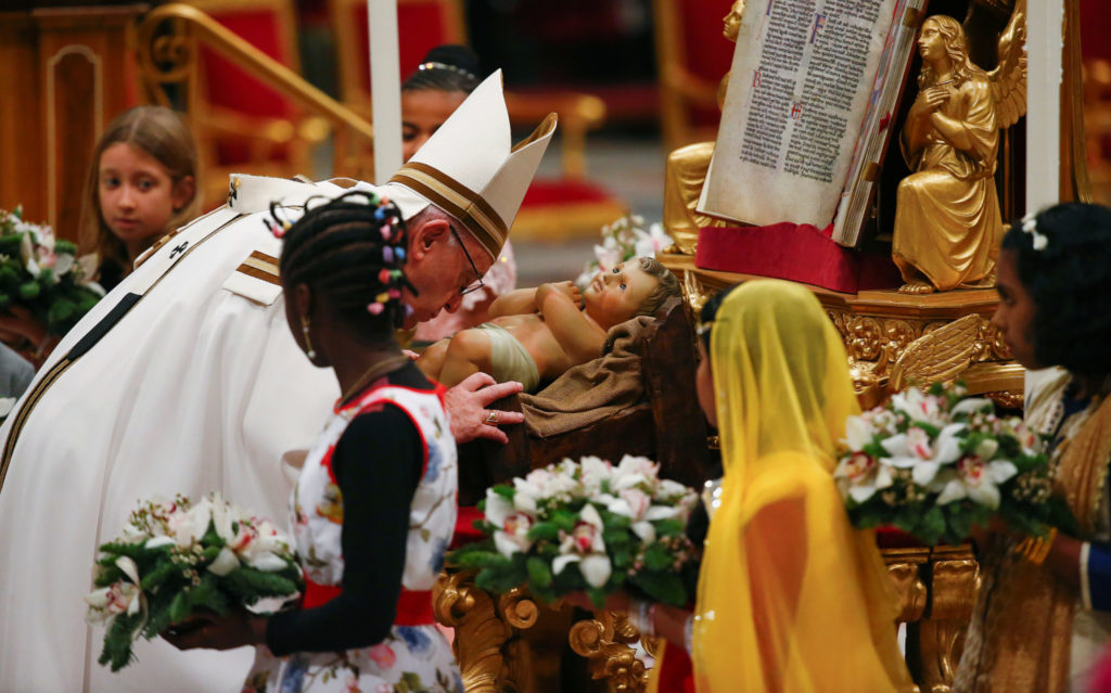Dagens flyktninger rømmer fra sine hjem akkurat som Josef og Maria måtte før Jesus ble født, sa pave Frans i sin midnattsmesse i Peterskirken julaften.