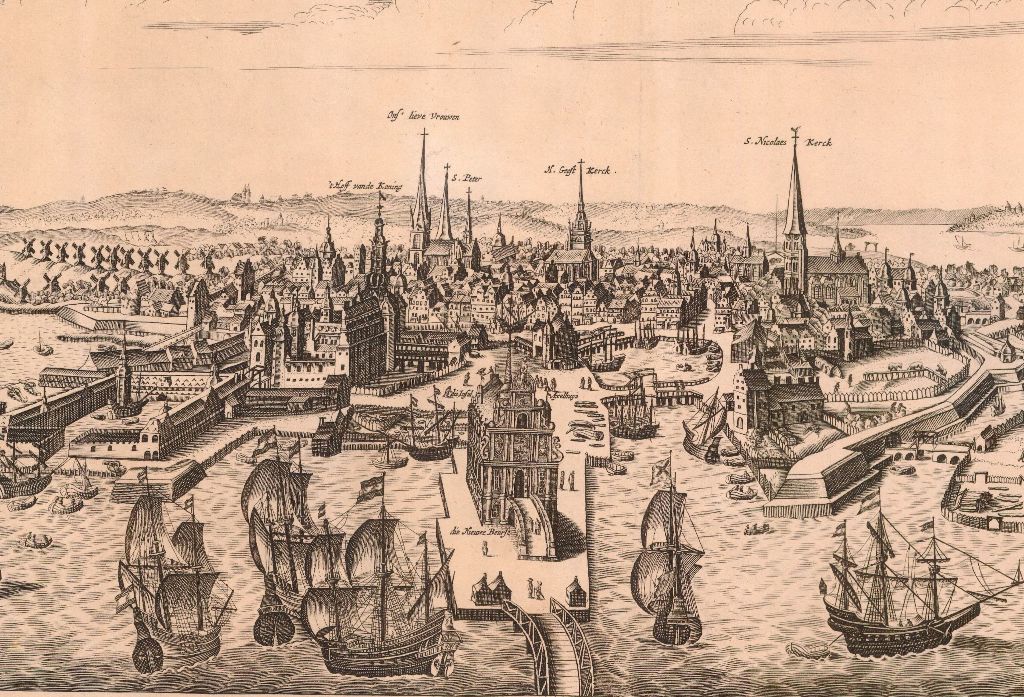Utsnitt av hva som etter alt å dømme er et kobberstikk, utført av en nederlandsk kunstner (all tekst er på nederlandsk), Københavns Stadsarkiv.