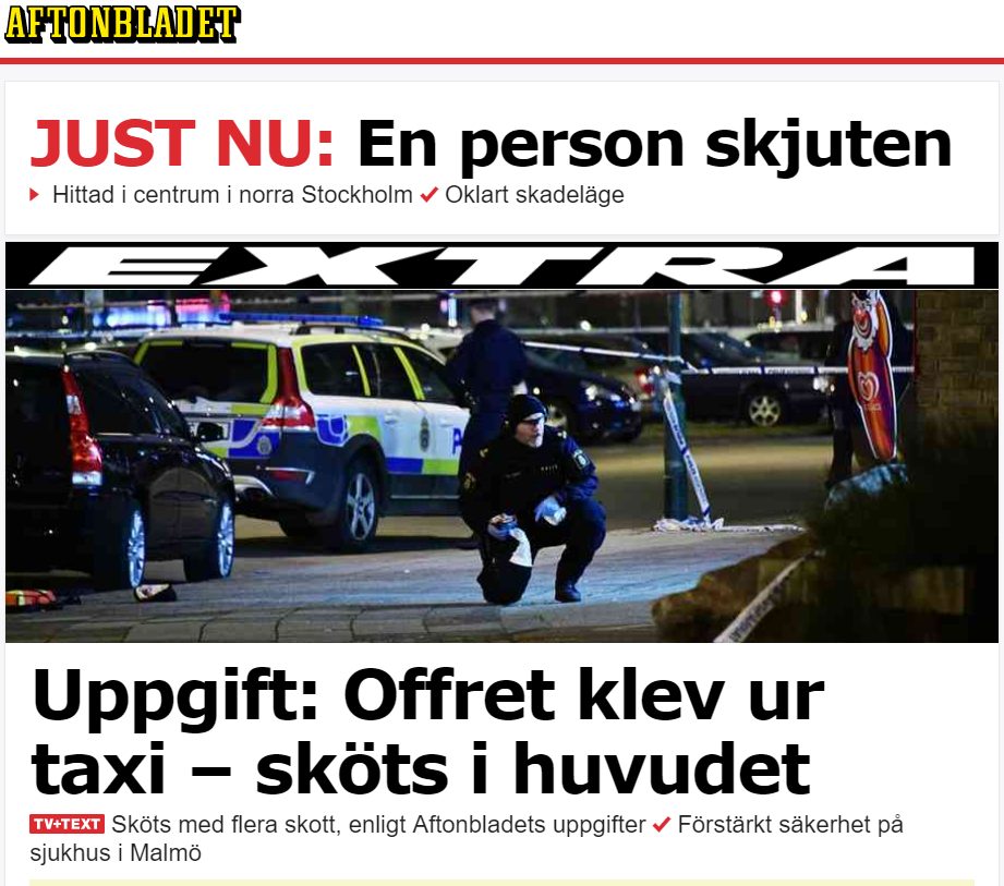 Vold og drap fyller daglig forsidene i Sveriges største aviser, men sakene dyttes kvikt nedover på siden. Her en skjermdump fra Aftonbladet i natt.