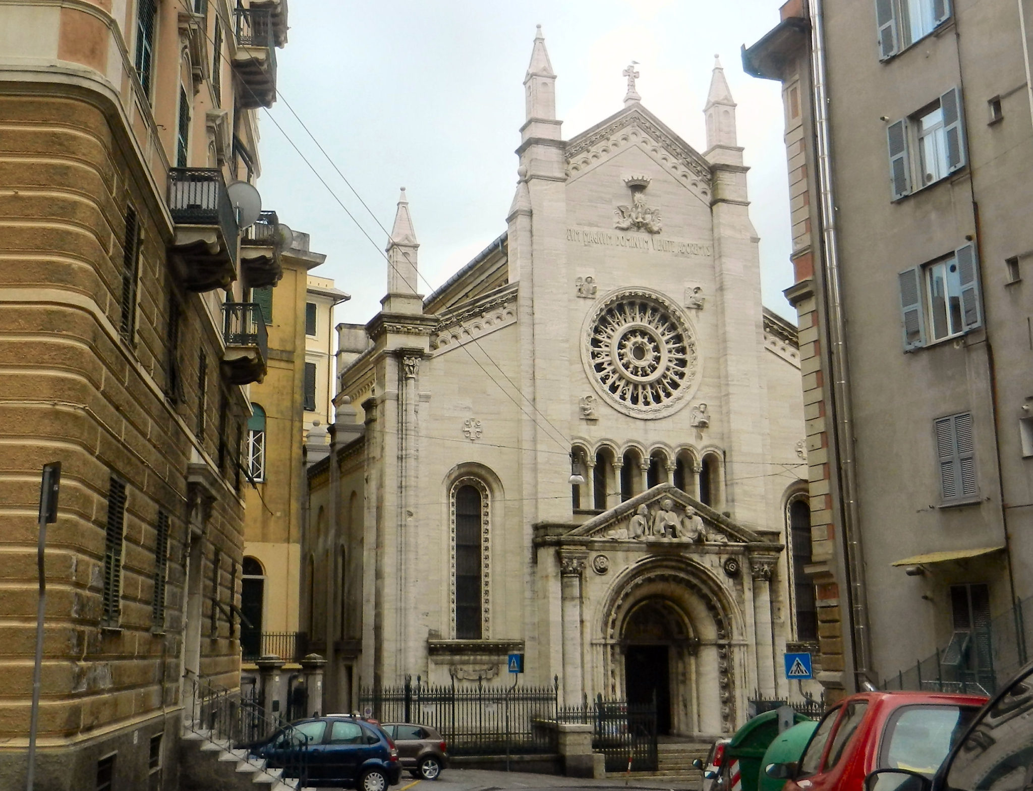 Santissmo Sacramento-kirken i Genova-bydelen Sampierdarena. Foto: Bbruno / Wikimedia Commons (utsnitt).