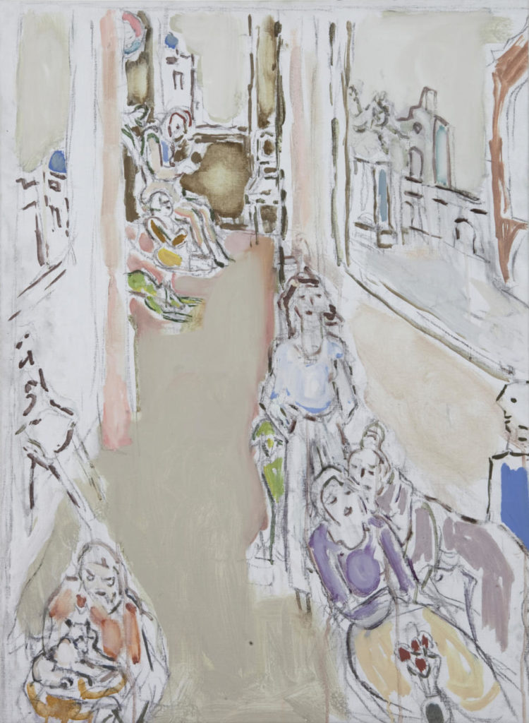 Formgivingen er her vag og uten presise detaljer, mens fargebruken holder seg til dempede nyanser. Kunstneren har bestrebet seg på å gi motivet en gjennomtenkt komposisjon, men den rastløse og rufsete linjeføringen svekker etter mitt skjønn dette formale grepet. Trolig for å oppnå det ubestemte og antydende som er Nielsen maleriske prosjekt.