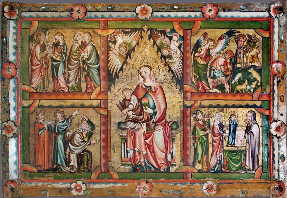 Kyndelsmesse (forvanskning av latin Missa candelarum – Lysmesse) feires den 2. februar, 40 dager etter jul, og markerer Jesu fremstilling i Templet, som beskrevet i Luk 2, 22 f.f. Sentralt sitter en tronende Madonna, øverst til venstre Bebudelsen og Maria og Elisabeths møte fra Luk 1, under dem De vise menn ( Mat 2), øverst til høyre Hyrdene på marken (Luk 2, 8 f.f), og nederst til høyre presentasjonen i Templet, med Josef, Maria, Jesusbarnet og gamle Simeon (Luk 2).