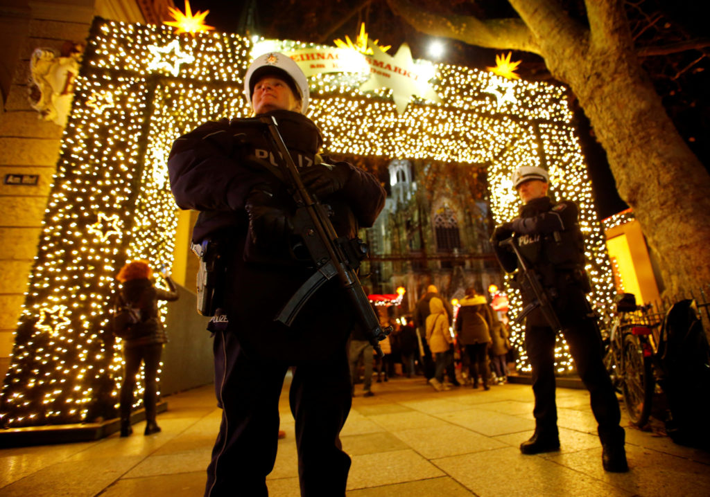 Tysk politi holder vakt ved julemarkedet utenfor Kölnerdomen den 28. november 2017. Foto: Thilo Schmuelgen / Reuters / Scanpix.