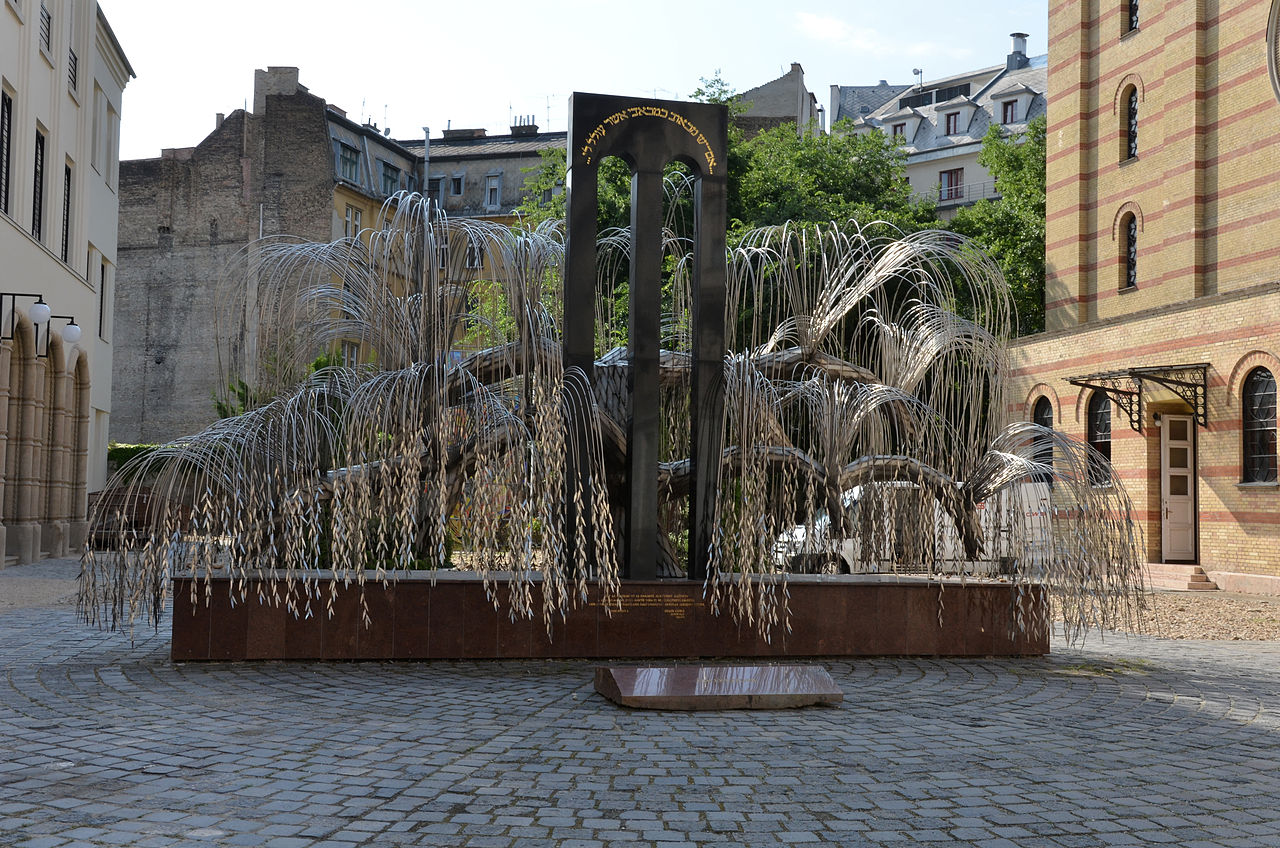 Denne minneparken ligger rett ved den store synagogen i Dohány-gaten, jiddisch Tabakgasse (Tobakksmuget), derfor ble synagogen også omtalt som Tabaktempel. Det er Europas største synagoge, til høyre i bildet kan vi se litt av den. Den ble sterkt skadet i løpet av krigen, men er nå restaurert. Monumentet er utformet som en sørgepil, og på bladene står navnene til ungarske ofre for Ha-Schoah (Holocaust).