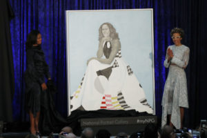 Artist Sherald and former first lady Michelle Obama participate in unveiling of portrait at the Smithsonians National Portrait Gallery in Washington