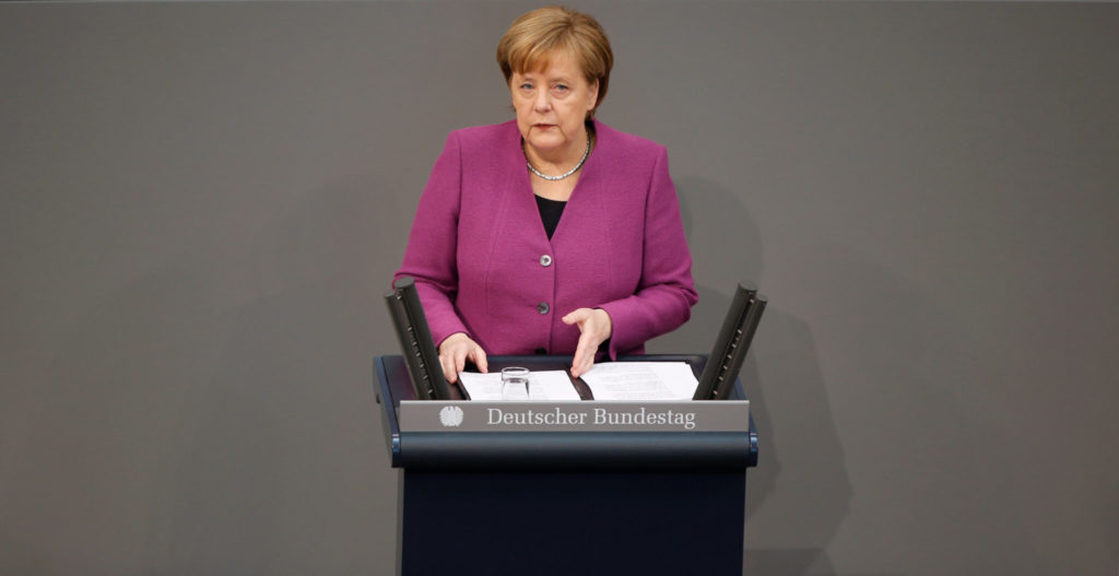 I en regjeringserklæring i Forbundsdagen torsdag, hvor statsminister Angela Merkel snakket mest om EU, tok hun blant annet til orde for en styrking av grensebyrået Frontex og en gjennomgang av unionens finanser med henblikk på den nye situasjonen som vil inntreffe idet Storbritannia, som har vært en av EUs store nettobidragsytere, forlater arenaen i 2019.
