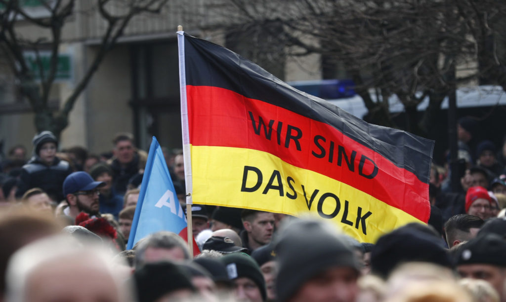 Folk demonstrerer mot migrasjonen i Cottbus i Tyskland den 3. februar 2018. Foto: Hannibal Hanschke / Reuters / Scanpix.