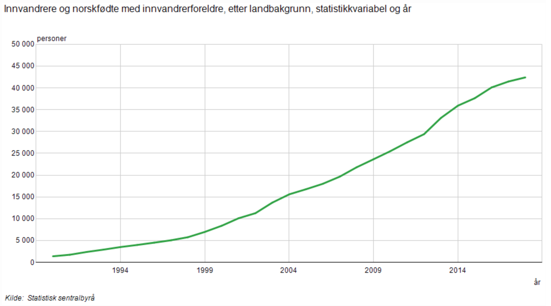 Diasporaen i Norge av somaliske innvandrere og deres barn har hatt følgende utvikling siden 1990, noe enhver kan finne ut selv i statistikkbankens tabell 05183 på nettsidene til Statistisk sentralbyrå (SSB):