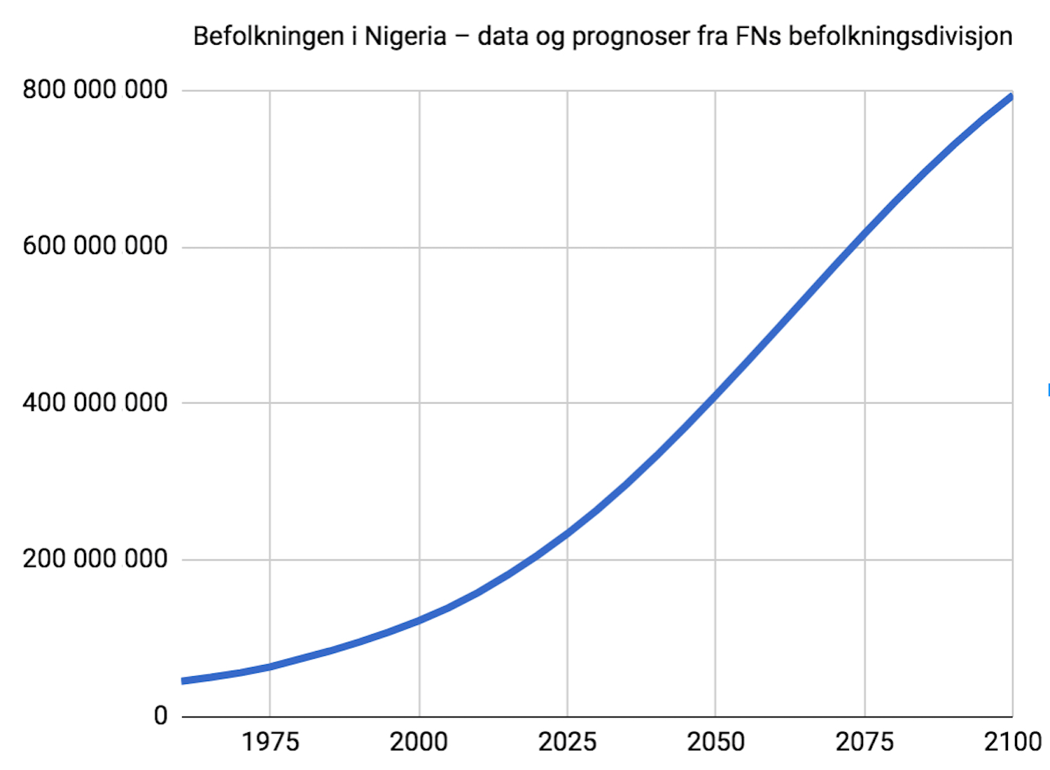 - Ifølge FNs prognoser vil Nigeria passere USA som verdens tredje mest folkerike land i 2050 (+300 millioner)