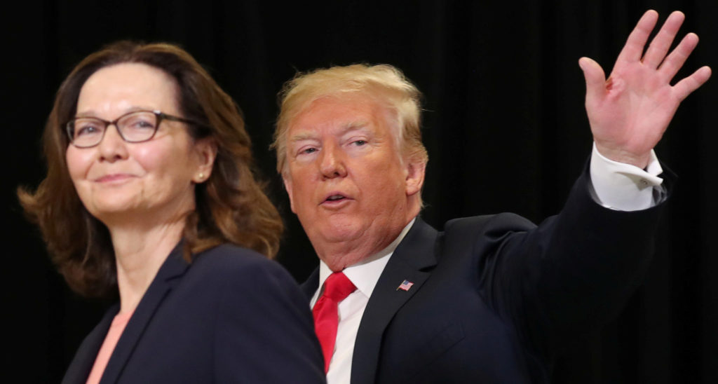 President Donald Trump sammen med sin nye CIA-direktør Gina Haspel etter innsettelsen i CIAs hovedkvarter i Langley, Virginia 21. mai. Foto: Kevin Lamarque / Reuters / Scanpix
