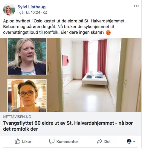 På St. Halvardshjemmet bor det nå istedet romfolk. Dette er det ikke bare Listhaug som reagerer på, Fridstrøm.