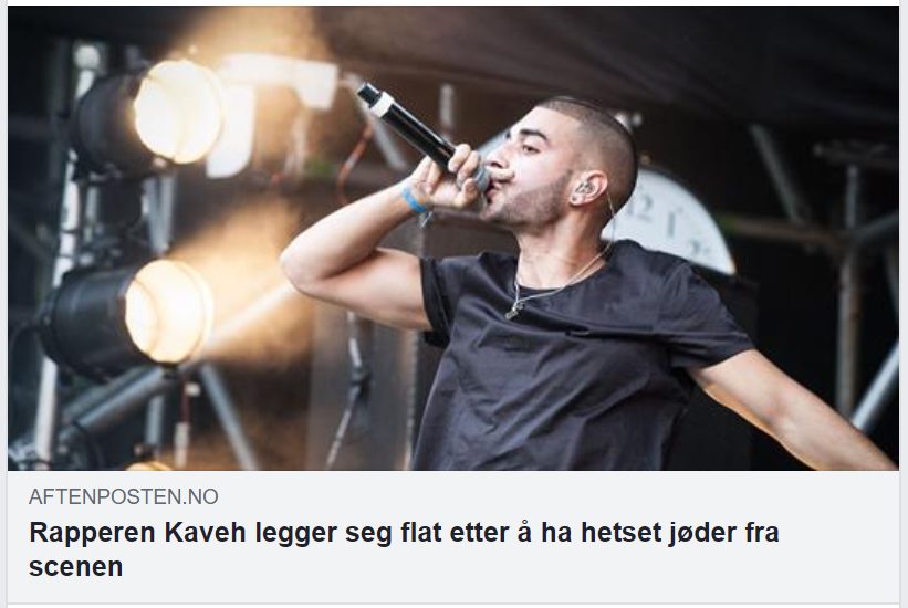 NTB skriver at artisten Kaveh har sagt unnskyld etter sitt «Føkk jøder» fredag: «Rapper beklager jødehets fra scenen under familiearrangement». Problemet er bare at det ikke finnes noen beklagelse.