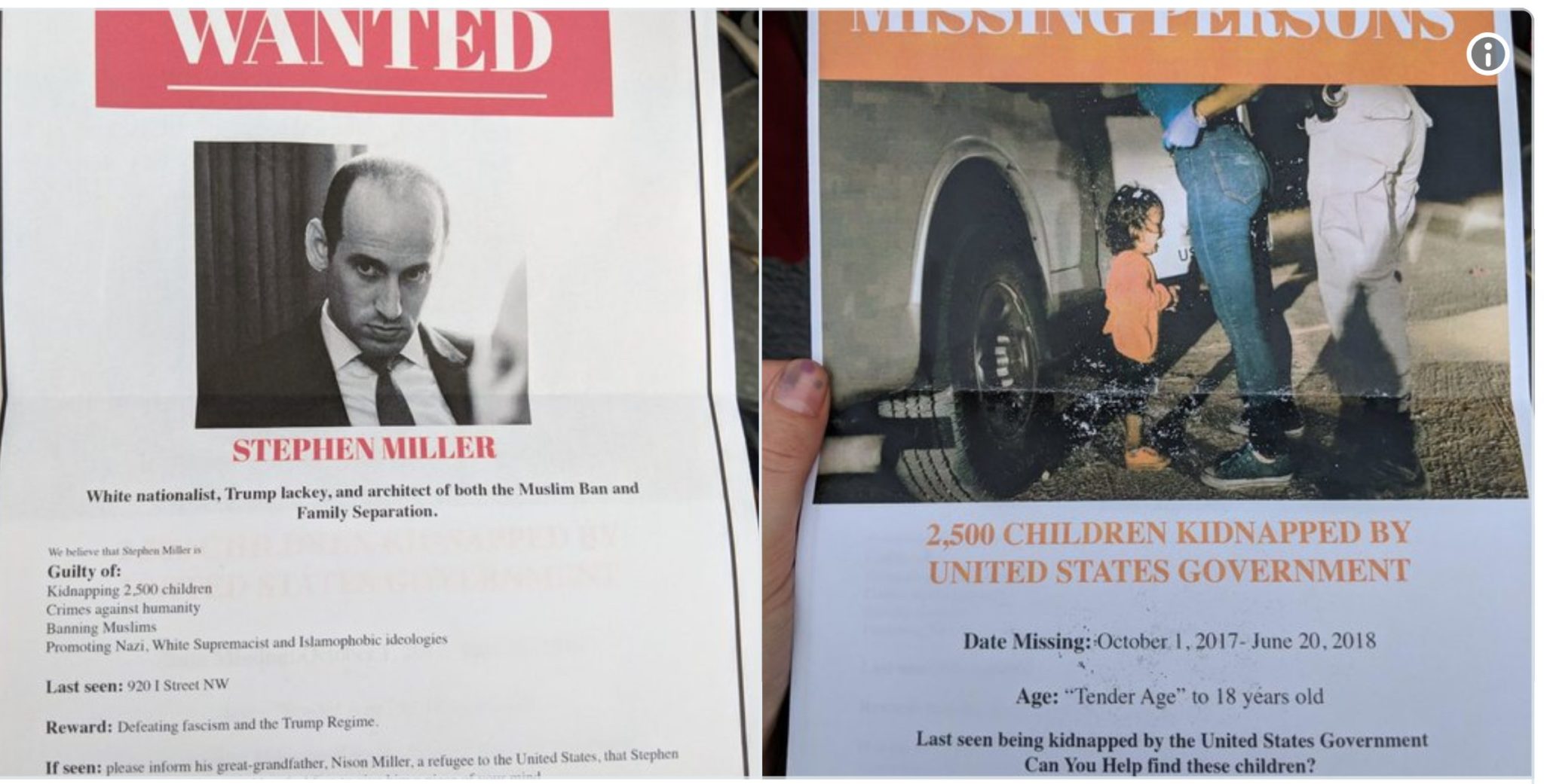 Aktivister samlet seg utenfor hjemmet til Stephen Miller. Han er en av Trumps nærmeste rådgivere, og mediene har fremstilt ham som arkitekten ba null-toleransen ved grensen.