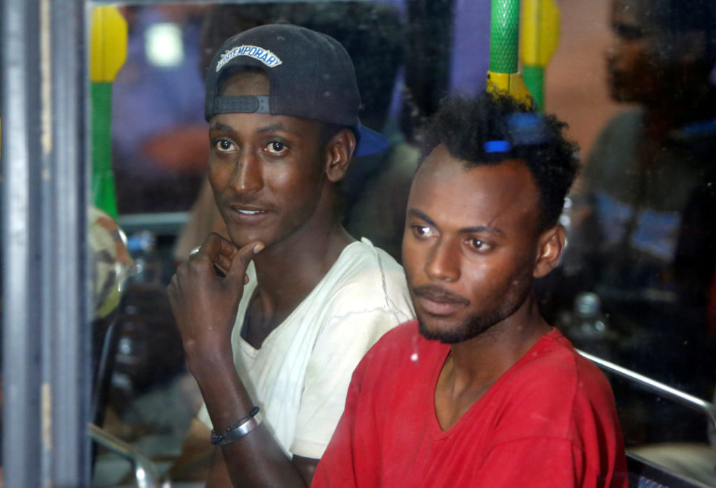 Migranter som er kommet til havnen i Valletta på Malta, befinner seg i en buss den 27. juni 2018. Foto: Darrin Zammit Lupi / Reuters / Scanpix.