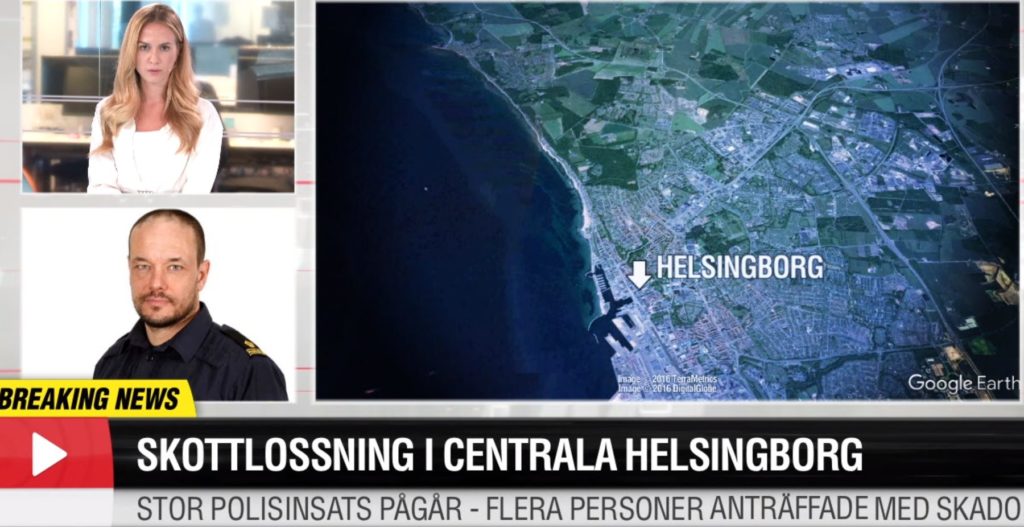 Fire personer er skutt og såret i sentrum av Helsingborg, opplyser svensk politi. Politiet ble varslet om skytingen klokken 20.02. En massiv politi-innsats pågår.