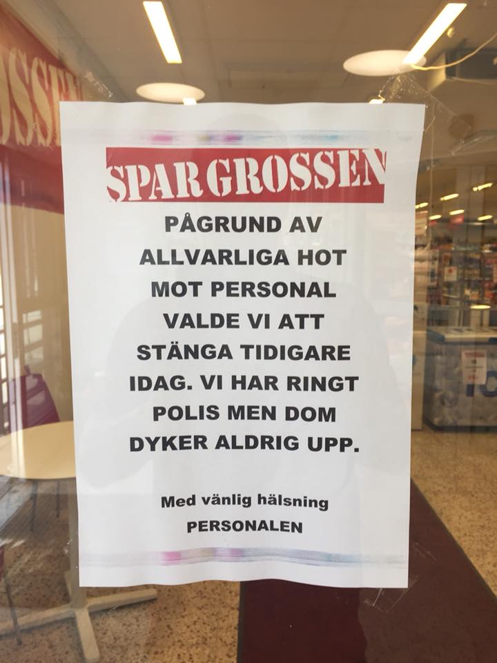 Look to Sweden. Sverige kan noe om politiets kapasitetsproblemer. Her fra en matbutikk igår: