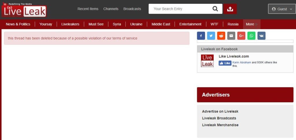 Igår kveld ble Sverigedemokraternas dokumentarfilm om Socialdemokraternas historie, «Ett folk. Ett parti», fjernet fra Youtube. Flere har forsøkt å laste den opp på nytt, men de blir slettet etter kort tid. Vi i Document forsøkte å laste opp videoen til Liveleak, men det lot seg heller ikke gjøre. Vi fikk kun meldingen: This thread has been deleted because of possible violation of our terms of service. Vi tenkte kanskje at fordi ordet «nazistiska» lå som en del av tittelen: Ett Folk Ett Parti – Socialdemokraternas Nazistiska Historia – del 3, så var det en automatikk i slettingen. Vi fjernet derfor dette og forsøkte igjen. Men Liveleak ville fremdeles ikke ha videoen.
