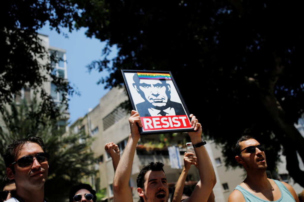 Det har kommet inn en nye avvisningsfront-mentalitet i politisk diskurs i Vesten. Den avviser motstanderen som moralsk illegitim. Overfor Israel får den en egen vri. Her er det LGBT-aktivister som demonstrerer mot en ny surrogati-lov i Tel Aviv 22 juli. Foto: Corinna Kern/Reuters/Scanpix