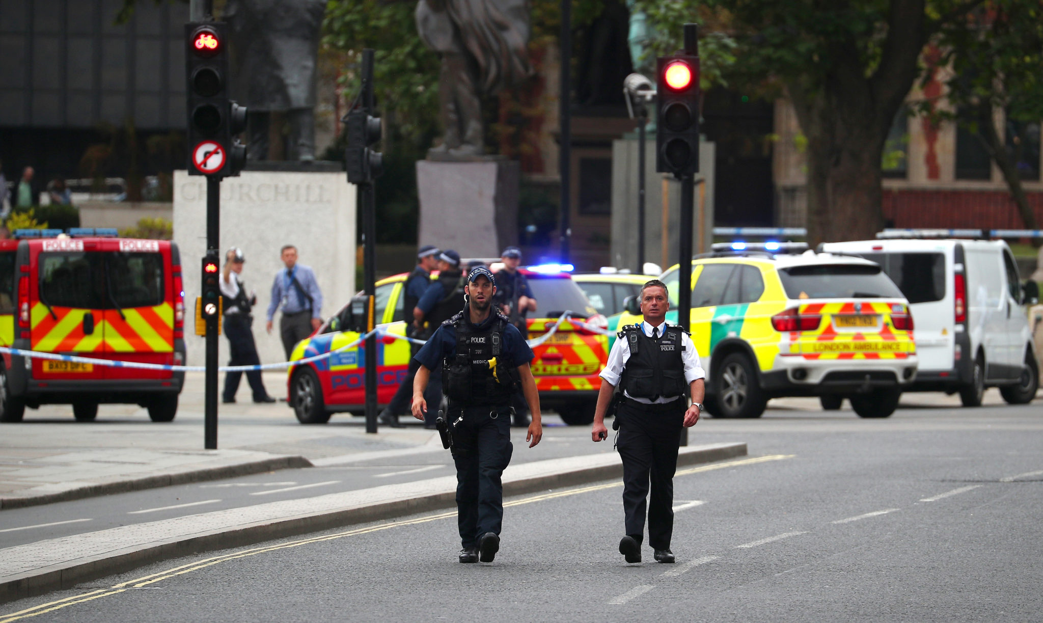 Væpnet politi i nærheten av parlamentsbygningen i London den 14. august 2018. Foto: Hannah McKay / Reuters / Scanpix.