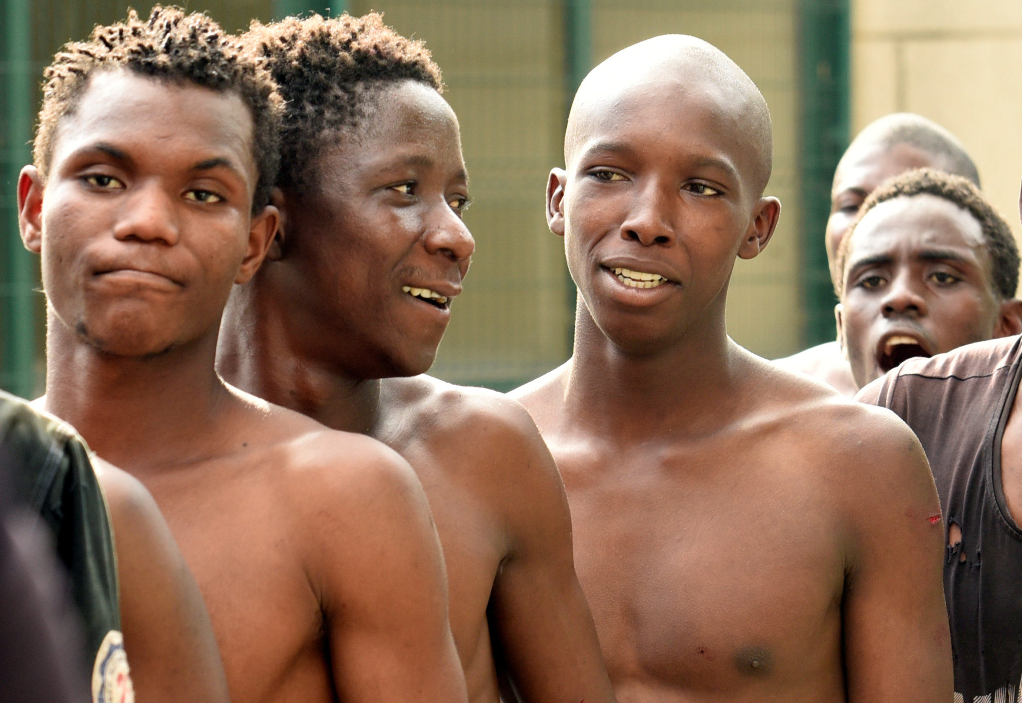 Afrikanske migranter som trengte seg inn i Ceuta den 22. august 2018, står i kø i migrantmottaket på stedet. Foto: Fabian Bimmer / Reuters / Scanpix.