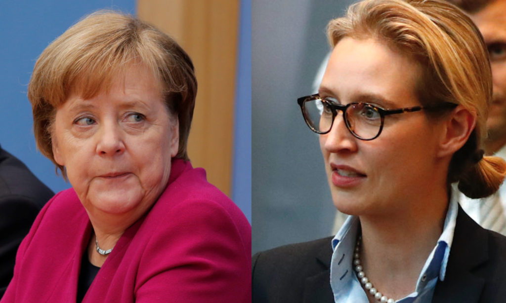 CDU-leder Angela Merkel og AfD-leder Alice Weidel. Fotografier: Axel Schmidt og Fabrizio Bensch / Reuters / Scanpix.