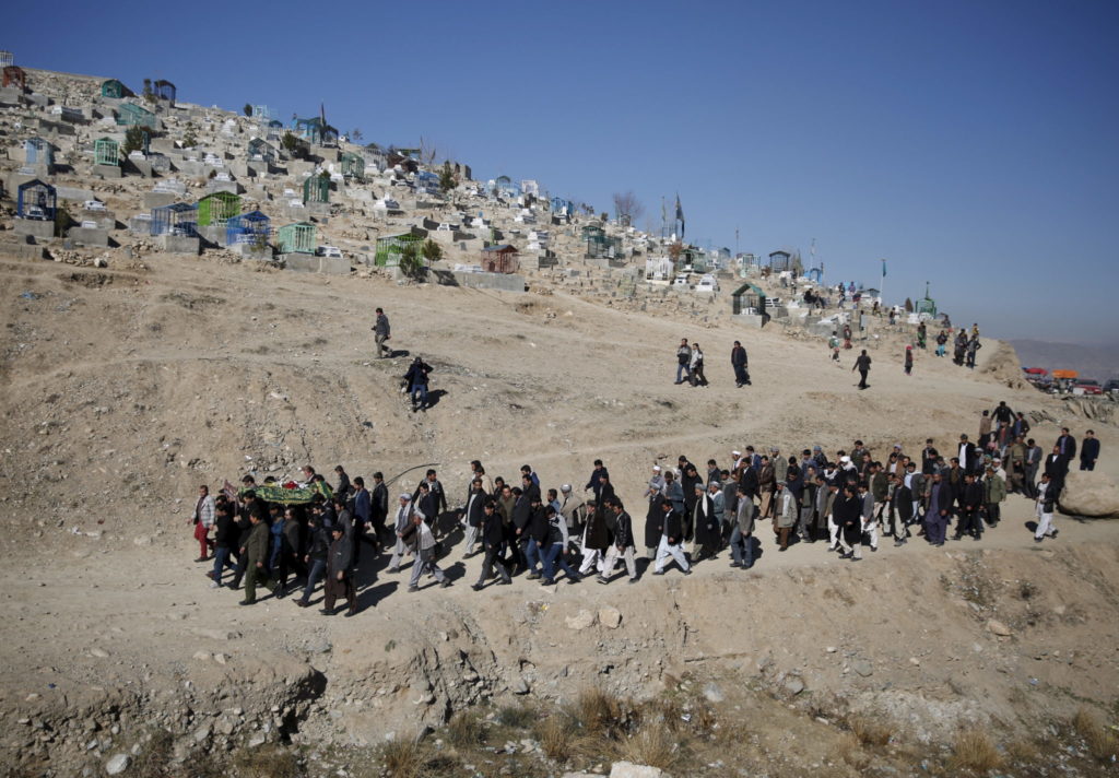 Sørgende følger et av ofrene for en selvmordsbombe til graven i Kabul den 21. januar 2016. Foto: Ahmad Masood / Reuters / Scanpix.