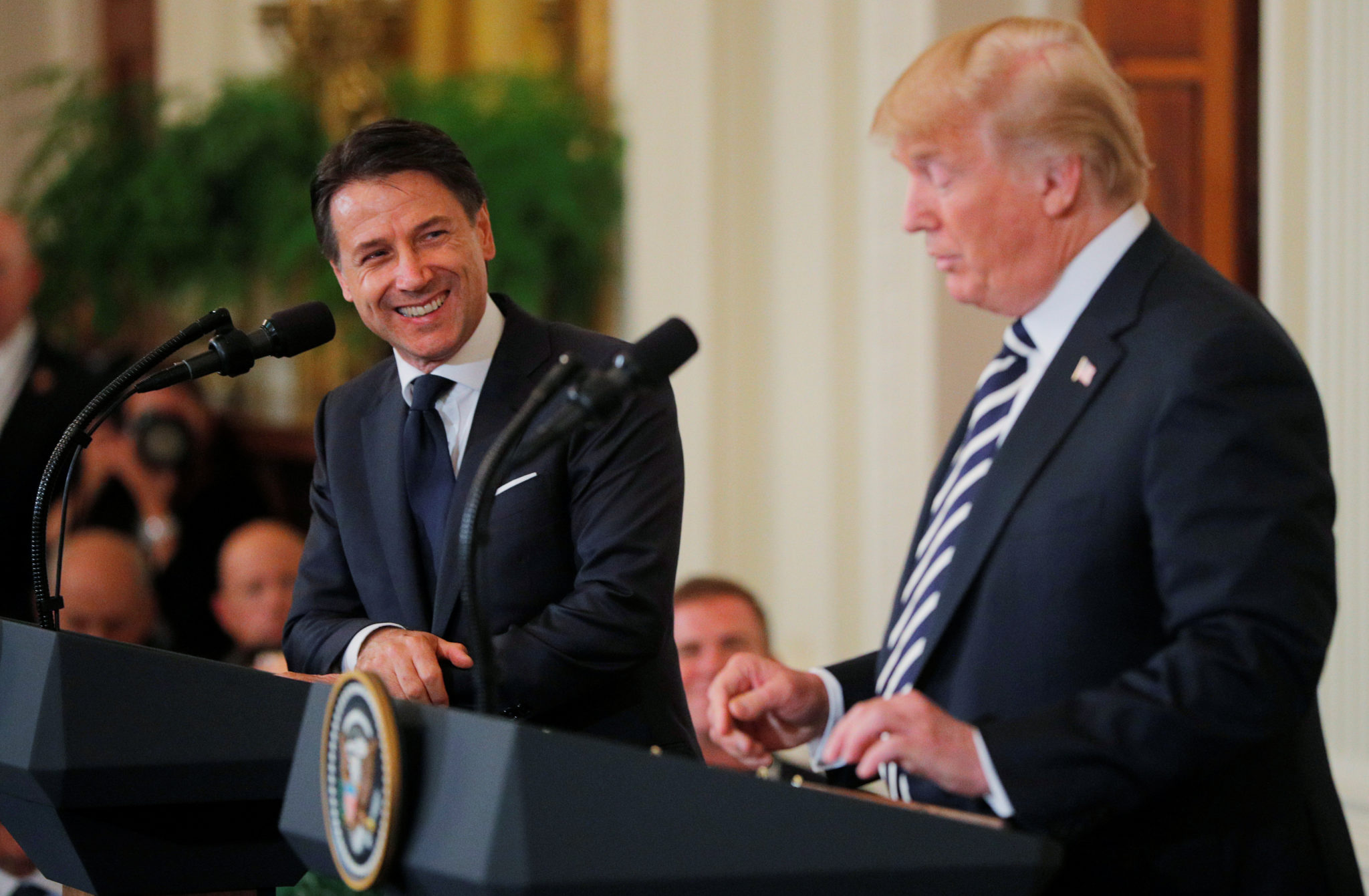 Donald Trump og Giuseppe Conte under en pressekonferanse i Det hvite hus i Washington den 30. juli 2018. Foto: Brian Snyder / Reuters / Scanpix.