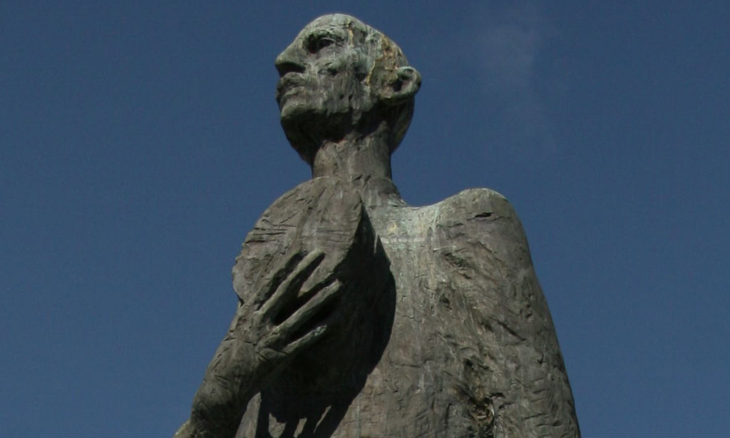Kongens standhaftighet ved tyskernes invasjon av Norge i 1940 var det mest formidable bidraget til det norske kongehusets merkevare noensinne. Hvem er det i dagens politiske landskap som viser om så bare tilnærmelsesvis kong Haakons kvaliteter? Knut Arild Hareide gjør det i alle fall ikke. Detalj fra Nils Aas’ statue av kong Haakon VII (1872–1957) på 7. juni-plassen i Oslo. Foto: Michal Klajban / Wikimedia Commons (utsnitt).