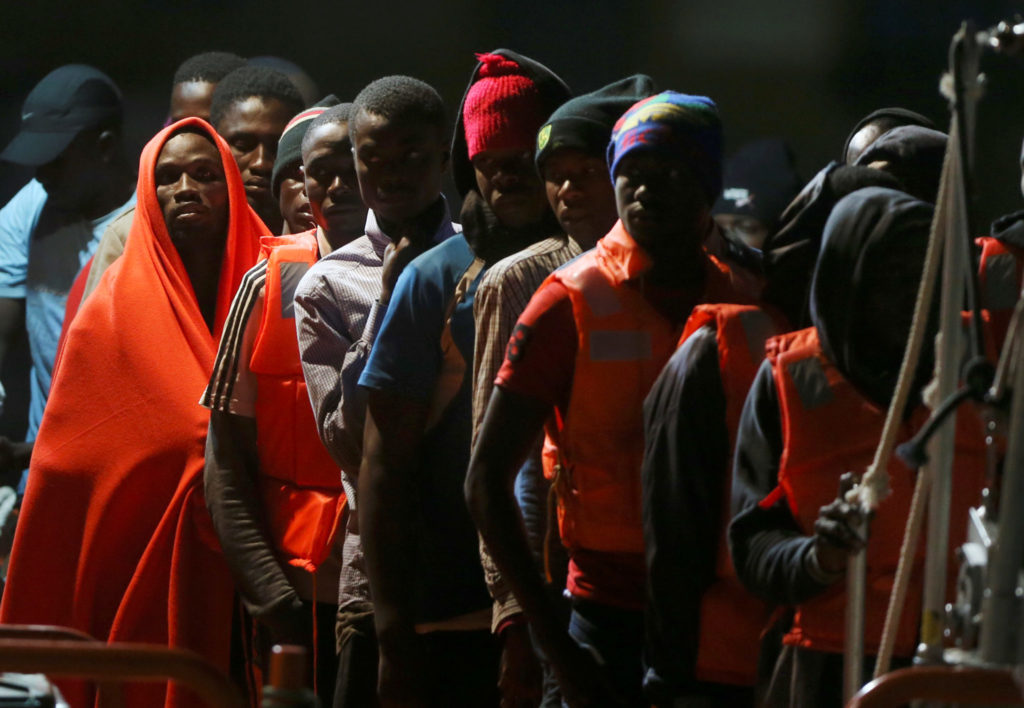 Migranter som er blitt hentet opp fra Middelhavet, venter på å gå i land på havnen i Malaga den 23. oktober 2018. Foto: Jon Nazca / Reuters / Scanpix.