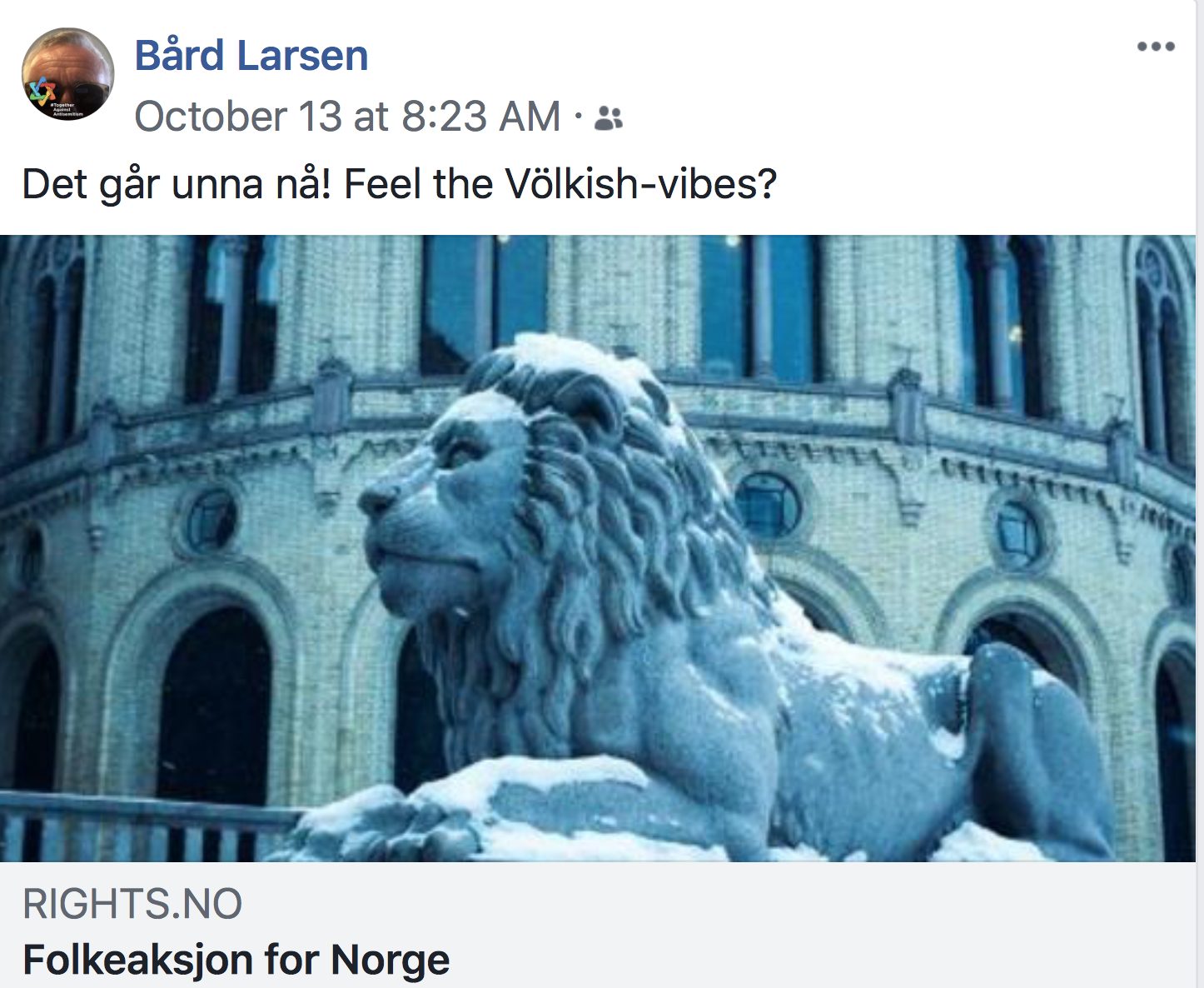Hege Storhaugs radbrekking av liberalisme (i vid forstand) og ditto omfavnelse av radikal nasjonalisme og kristen Zeitgeist har i praksis bekreftet inntrykket av at HRS har blitt en ideologisk premissleverandør godt ute på den nasjonalistiske høyrefløyen. Nå har HRS også tatt initiativ til det de kaller Folkeaksjonen for Norge.