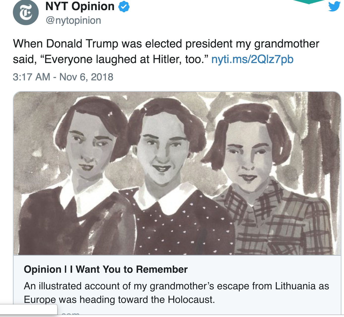 På valgdagen velger New York Times å publisere en artikkel på opinionsiden som sammenligner Trump med Hitler.