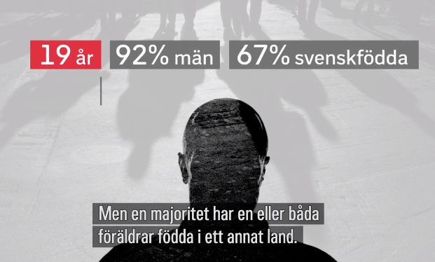 Den typiske i kartläggningen är 19 år. 92 procent är män. 67 procent är födda i Sverige men en majoritet har rötter i andra länder, antingen genom att själva vara födda i ett annat land eller har någon förälder som är det.