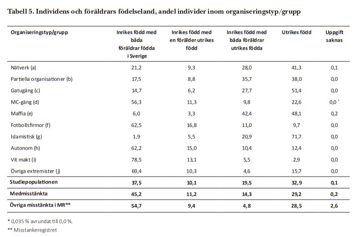 Statistiska Centralbyrån (SCB) kvier seg for å opplyse befolkningen om hvem man bør passe seg for i dagens og fremtidens Sverige. Fra rapporten sakser vi: