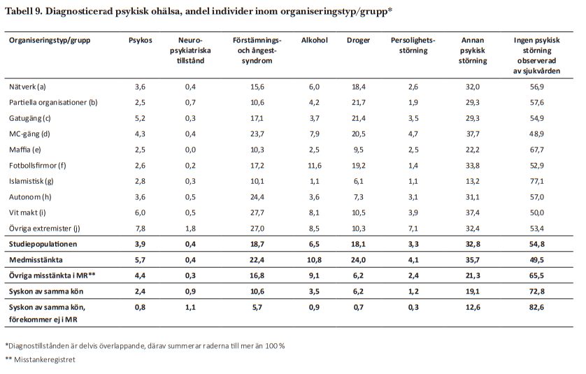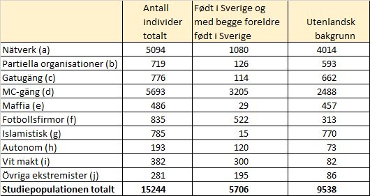 Av de som ingår är mer än 90 procent män och nästan 70 procent är födda i Sverige.