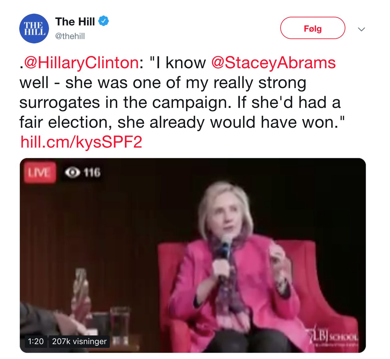 I valgkampen pekte Hillary på Trump og sa han ikke var villig til å respektere resultatet av demokratiske valg. Ett år sener sa hun at valget ikke hadde vært fair. Trump var blitt president pga russerne. Flere av Obamas menn har sagt det samme. Nå går hun et skritt lenger og sier svarte blir snytt for seieren fordi de er svarte. Hvis valget var rettferdig ville Abrams ha vunnet. Vi er tilbake i Black Panters USA.