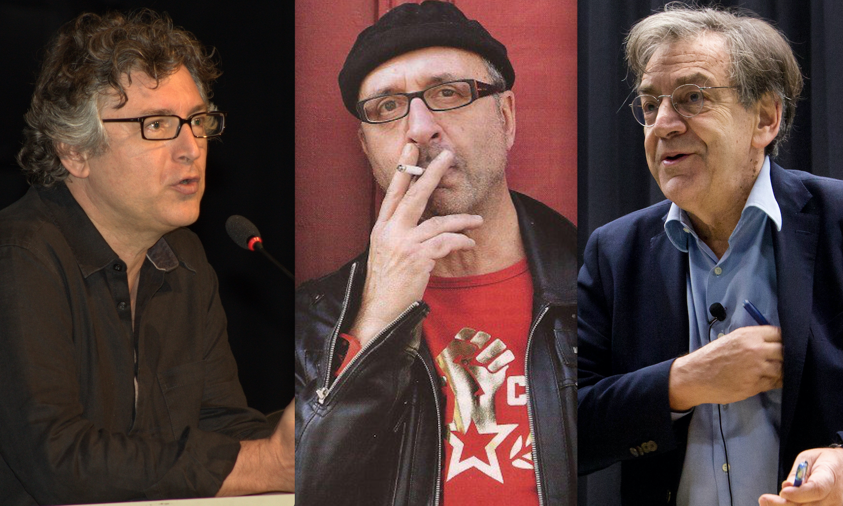 Michel Onfray (foto: Fronteiras do Pensamento / Wikimedia Commons), Jean-Claude Michéa (foto: Facebook) og Alain Finkielkraut (foto: Jérémy Barande / Wikimedia Commons).