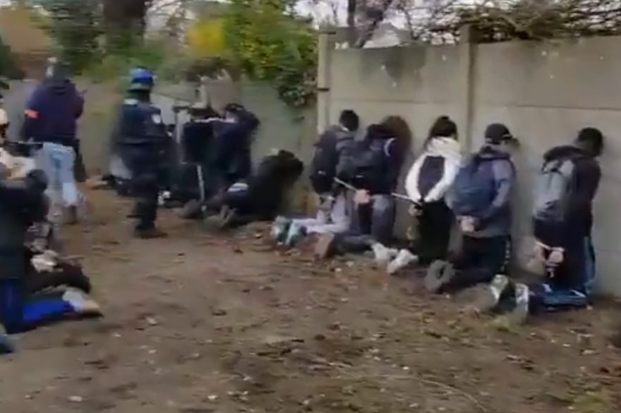 Studentene ble pågrepet i Paris-forstaden Mantes-la-Jolie torsdag, etter en demonstrasjon mot regjeringen som de siste tre ukene har spredt seg til skoler over hele i Frankrike.