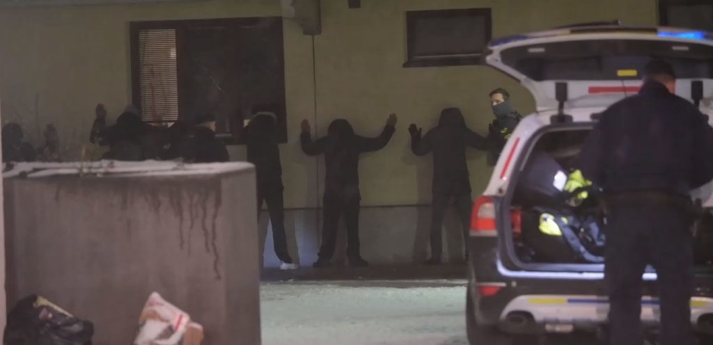 Politiet stilte et titall mørkkledde menn opp mot veggen. Skjermdump, Aftonbladet TV