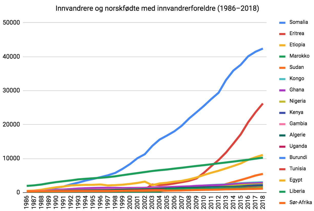 Med tanke på at innvandrerbefolkningen fra Somalia utgjør en tredjedel av alle fra Afrika, og med det er suverent størst av de afrikanske diasporaene i Norge, er det nokså klart at det som skjer på den somaliske fronten, gir seg store statistiske utslag.