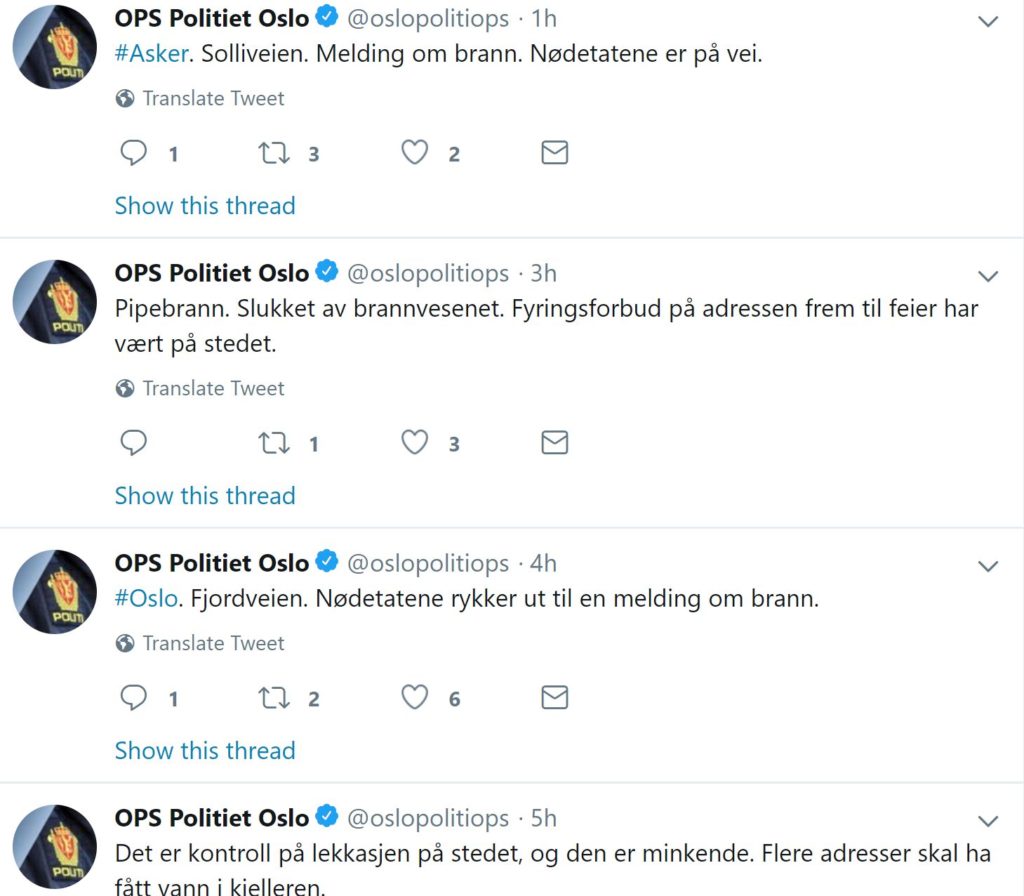Hvorfor nevnes ikke en stor politiaksjon hvor de jakter på mann med kniv som har truet flere personer? Er ikke det av større offentlig interesse enn en pipebrann og vann i kjelleren?