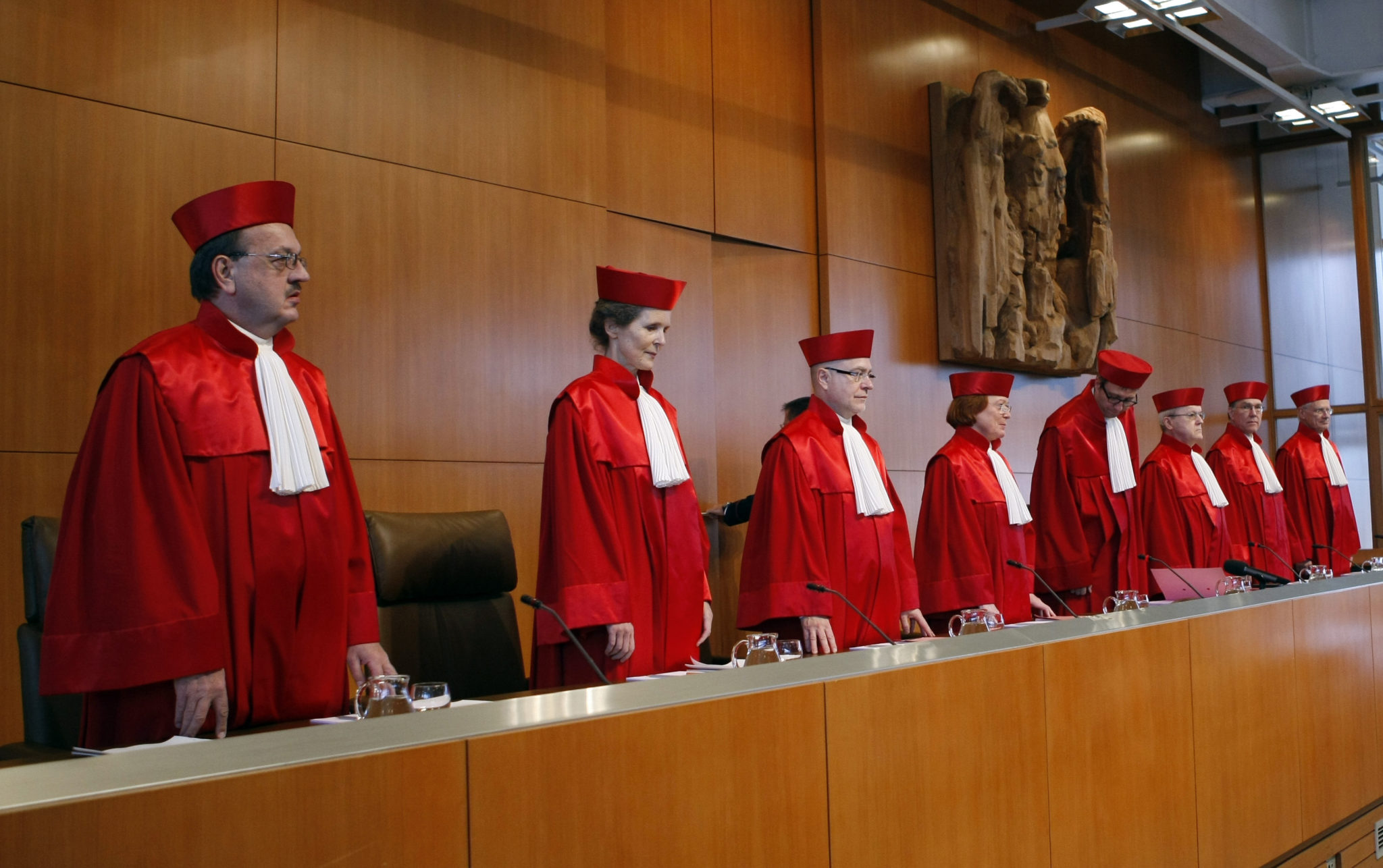 Dommerkollegium i den tyske forfatningsdomstolen. Aktivfoto: Thomas Kienzle / Reuters / Scanpix.