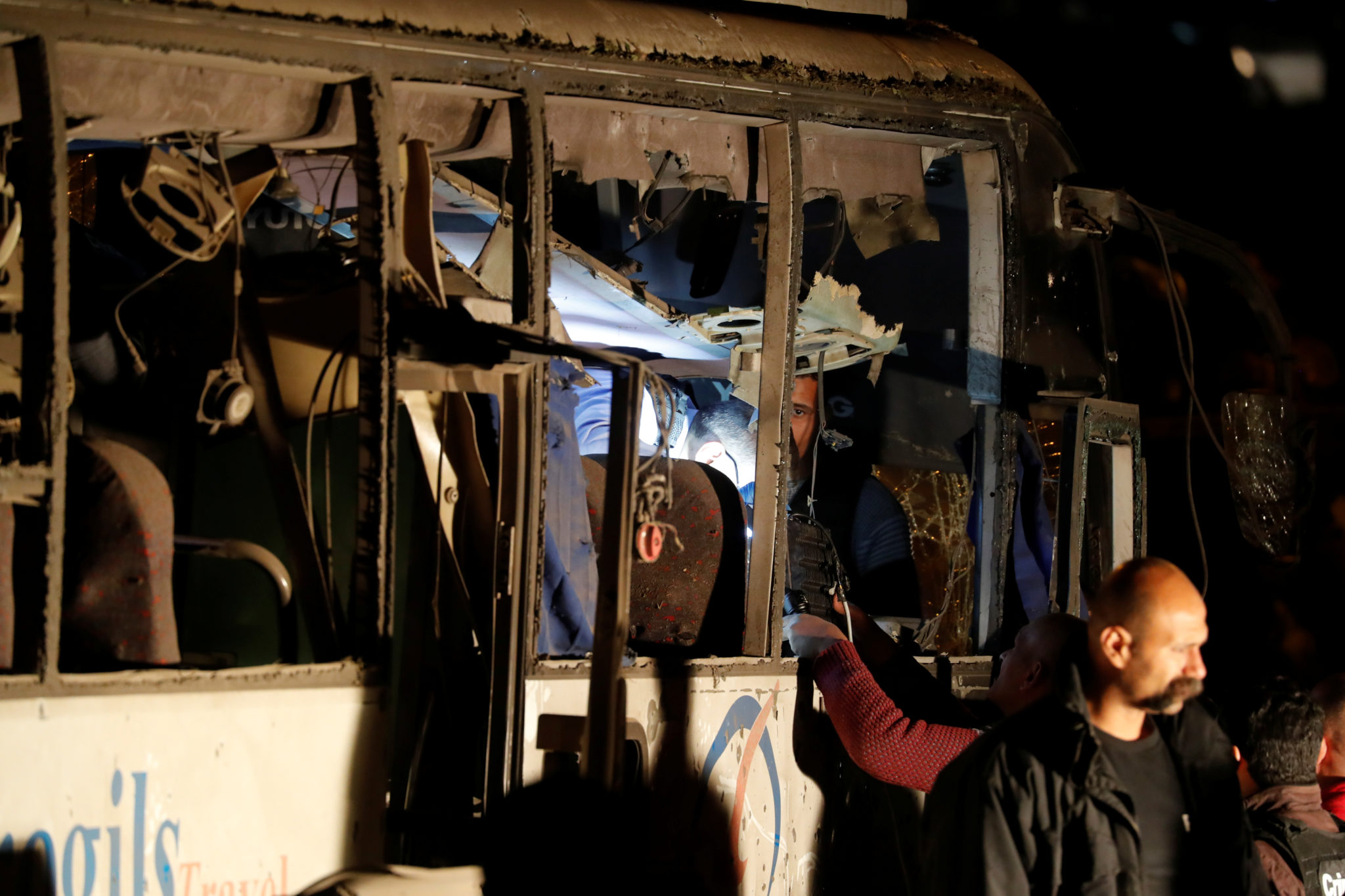 Politiet undersøker åstedet for bussbomben i Giza, Egypt, den 28. desember 2018. Foto: Amr Abdallah Dalsh / Reuters / Scanpix.