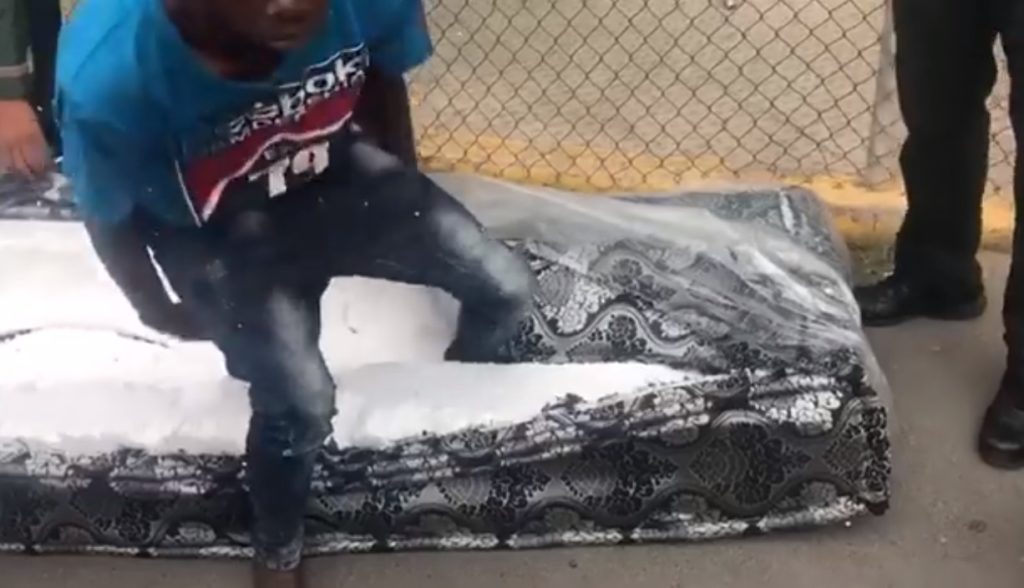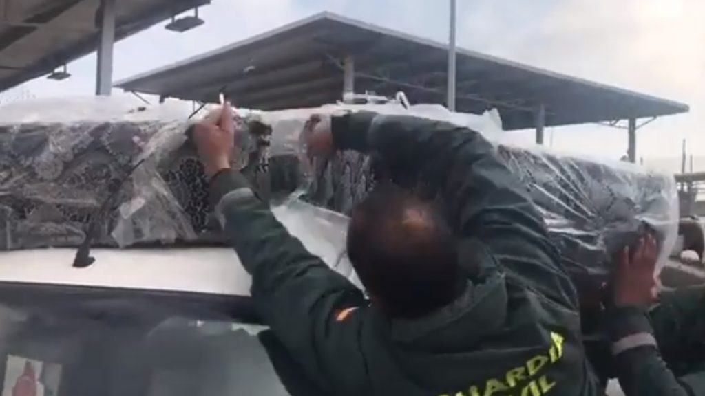 En video av det spanske Guardia Civil som finner to afrikanere gjemt i madrasser på biltaket er lagt ut på nettet. De to illegale migrantene ble oppdaget på søndag i Farhana på grensen mellom Marokko og den spanske enklaven Melilla i Nord-Afrika.