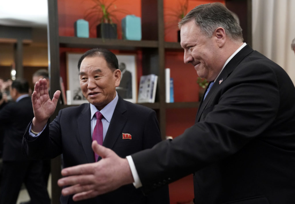 Mike Pompeo med Kim Yong-chol fredag 18. januar. Foto: Joshua Roberts/Reuters/Scanpix